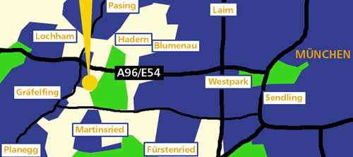 If you go by car, use Autobahn A96 and then Pasinger Straße or Würmtalstraße and then Neurieder Weg (see pictures below).